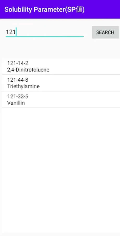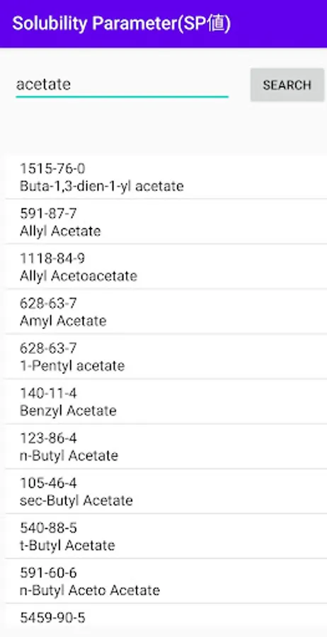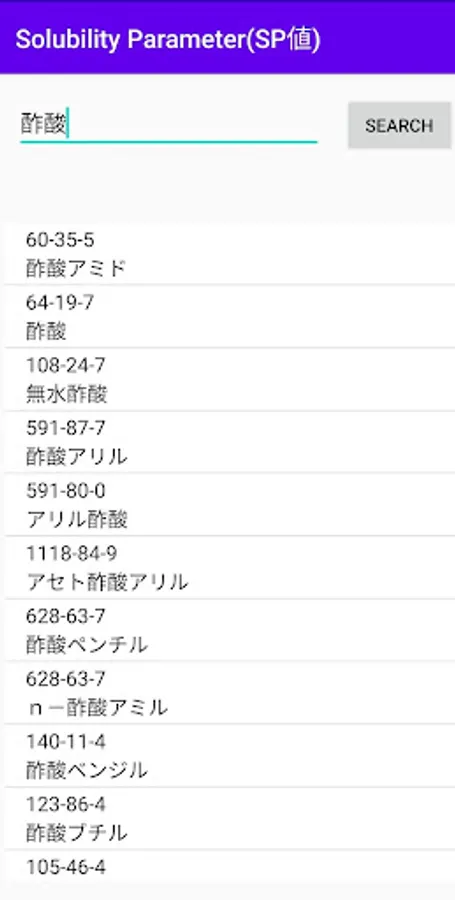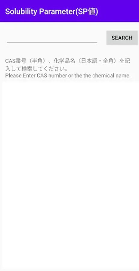 Solubility parameter (SP value) is an application for searching the SP value of a chemical substance that is an index of solubility. This app is currently available in Japanese and English.