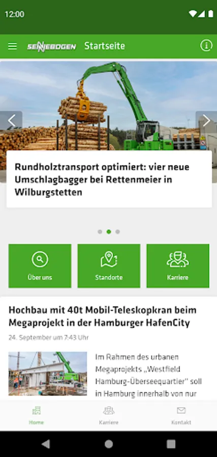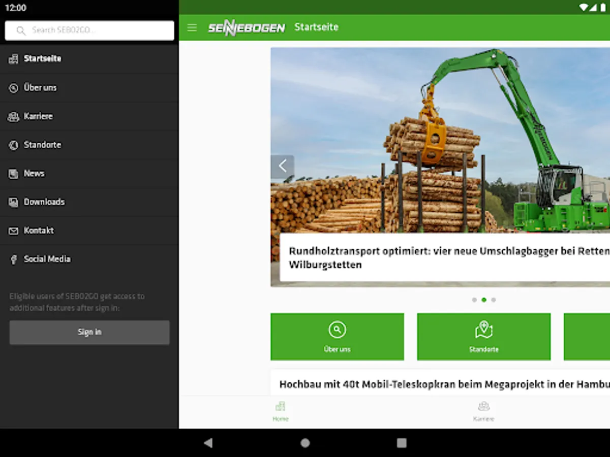SEBO2GO is the linchpin of communication in the SENNEBOGEN group of companies. The app is aimed at customers, applicants, the press and all employees. Take a look at the app and get an exclusive insight into the world of the green family company.