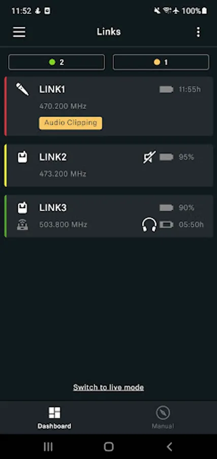 Automated setup of receivers and transmitters, frequency allocation, channel naming, muting and battery status are now only one tap away.