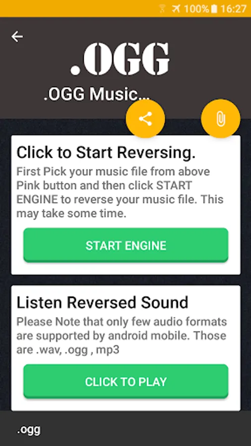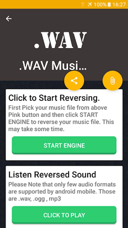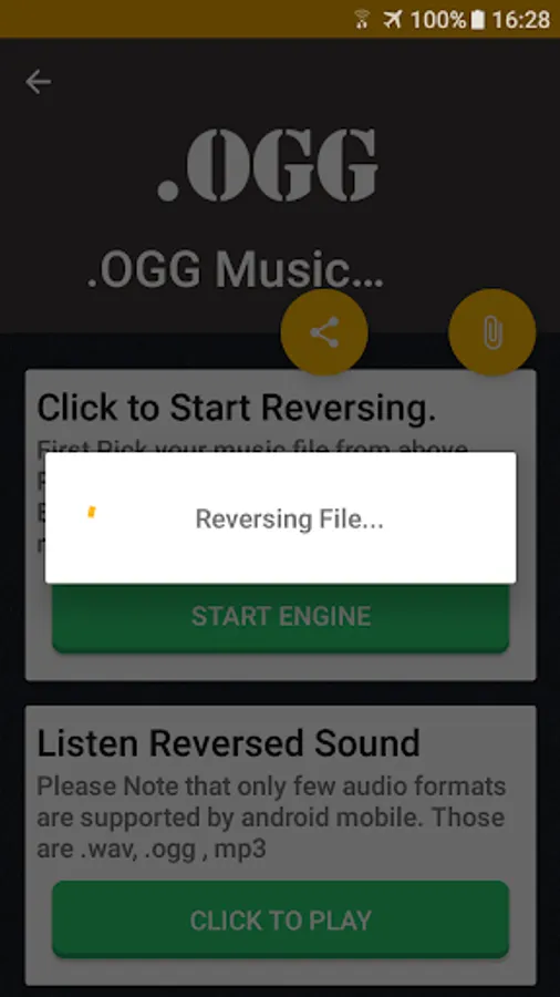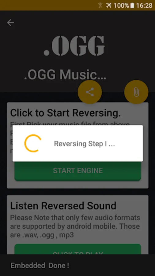 You can easily pick an audio file from your directory and embed audio into app and then apply reversing to your desired music and it also reduces its size. What's more, you can share it in any available platforms and also play amplified audio if format is supported by your mobile.