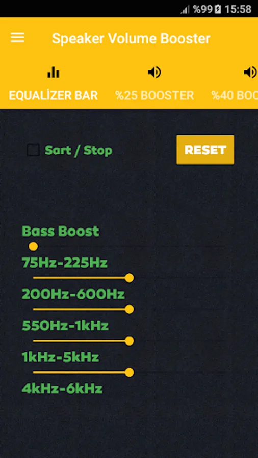 Music Volume Booster app boosts your speaker or headphone sound volume and also you can easily load Your Music Tracks and Boost its volume up to 30% and you can also adjust 7-bands Equalizer to enjoy more. it is a very useful app for movies, audio books and Music addicts. What's more, you can control all of the sounds in your phone! Volume Booster application uses audio algorithms in order to eliminate dump noise.