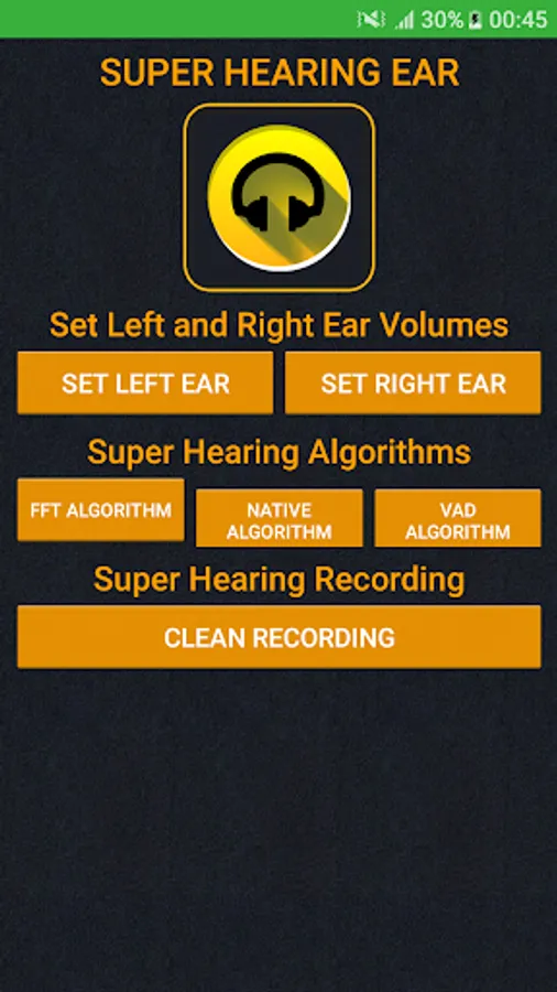 Super Hearing Ear amplifies sound from the microphone straight to your headphones to give enhanced hearing and also it can record the sound if you wish. It works like a hearing aid or better hearing on low volume of the gossips. What's more, it can record audio in timer mode to help you and Headphones are required and a must. You can Adjust amplification sensitivity by seek bar and get better sound and eliminate unwanted noise from microphone. So, Super Hearing Ear turns up the volume on real life to help hear things that may be difficult to hear or understand. Thank you for supporting us. We are happy to help you if you provide us feedback !