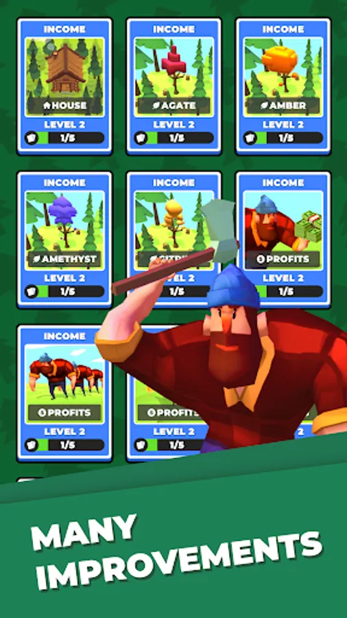 Each lumberjack is already having a big beard and he’s high-skill idle miner but if you merge them, they will be even better!