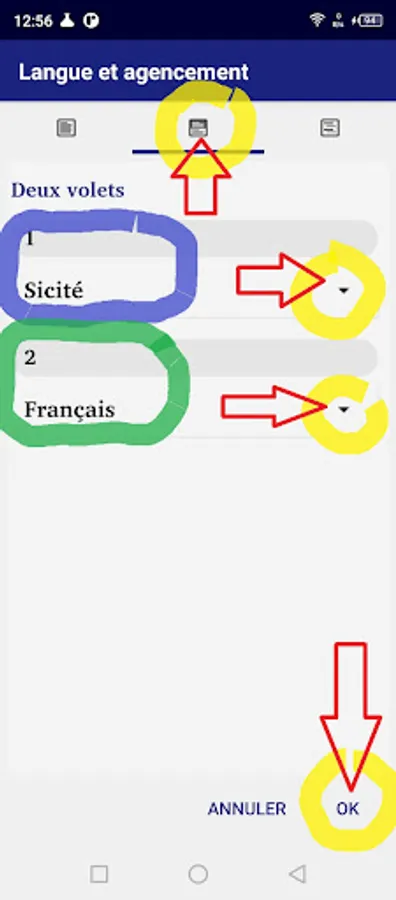 - “two panes” to display the Sicité at the top and at the same time the French or English version at the bottom