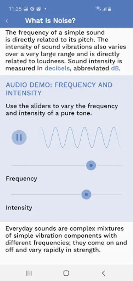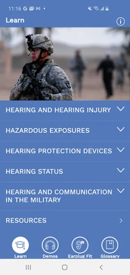 An informational tool to help Warfighters take their hearing health into their own hands. The app combines text with contextual demonstrations to provide knowledge and understanding of the dangers of auditory injury and what life could be like if proper precautions are not taken. The Warfighter can experience hearing loss and tinnitus through simulations before a permanent and progressive disability is acquired. When questions arise as to how well hearing protection devices (HPDs) are fitting, the HPD Check feature will allow the Warfighter to compare his/her current fit of HPDs in his/her own ears to examples of good fitting devices.