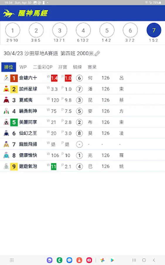 2. 排位 - 設有展開及折疊功能,方便查看各場賽事所有或特定馬匹的詳細資料。