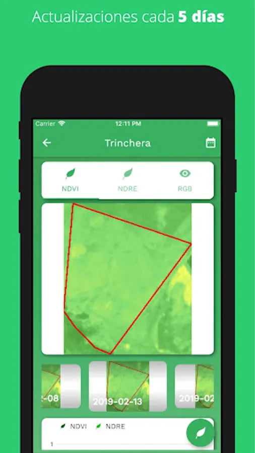 Green index (NDVI) of all your processed crops every 5 days so that you are always updated.