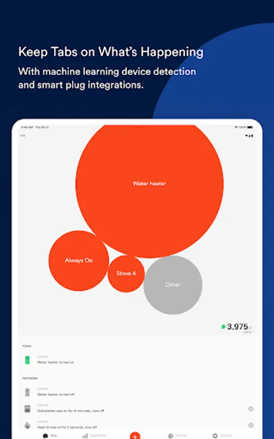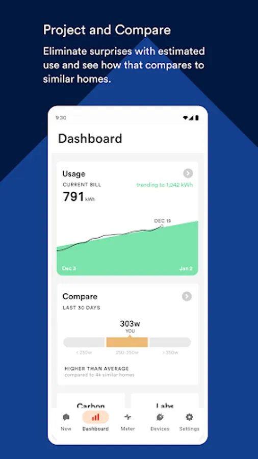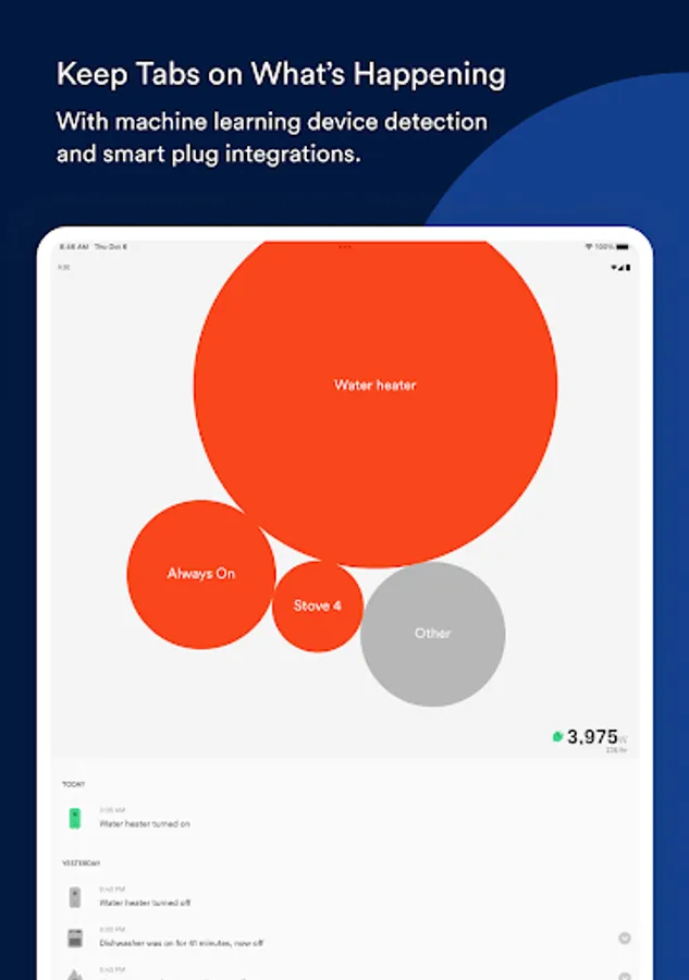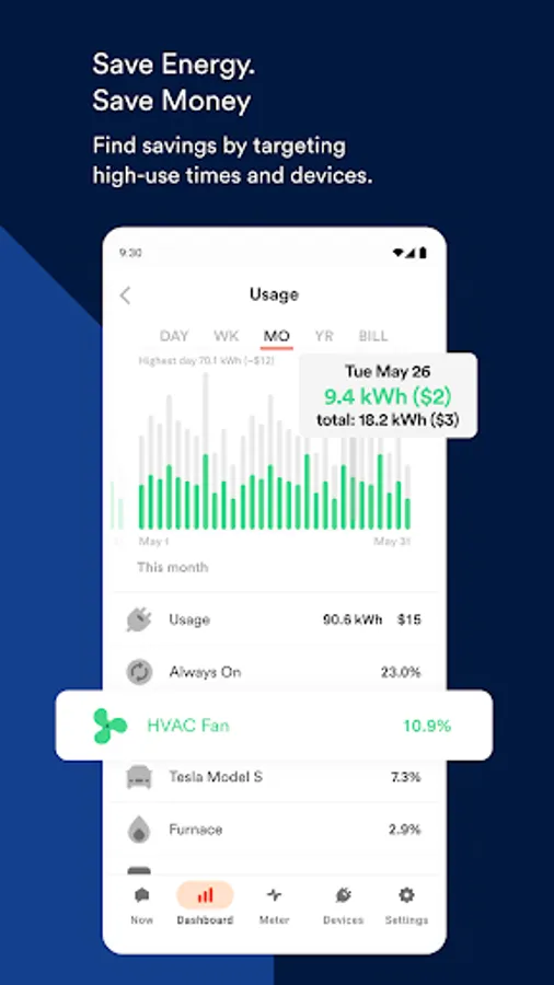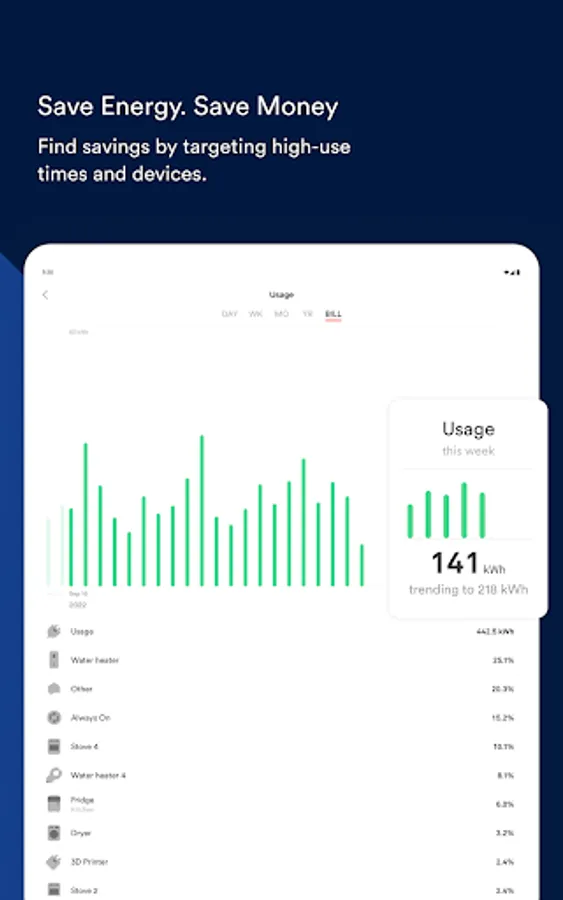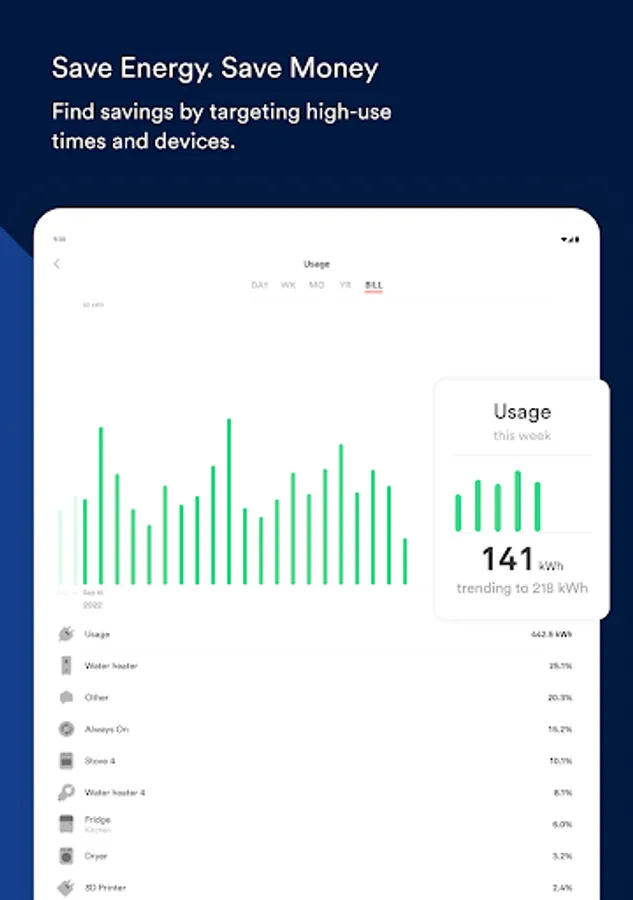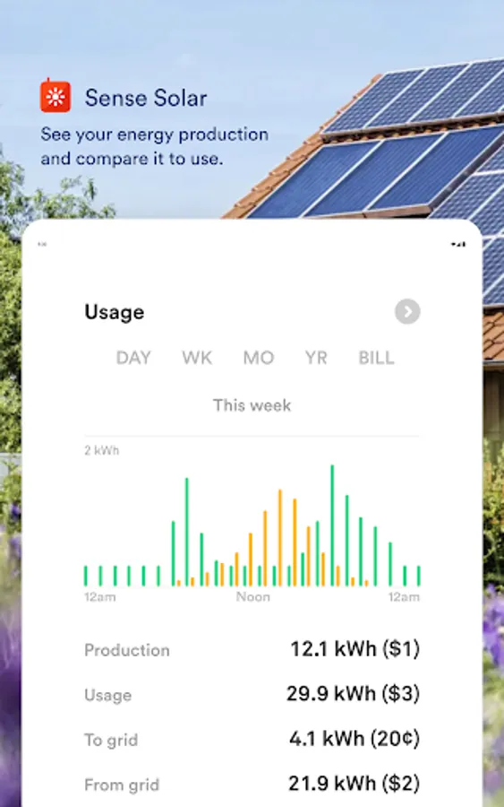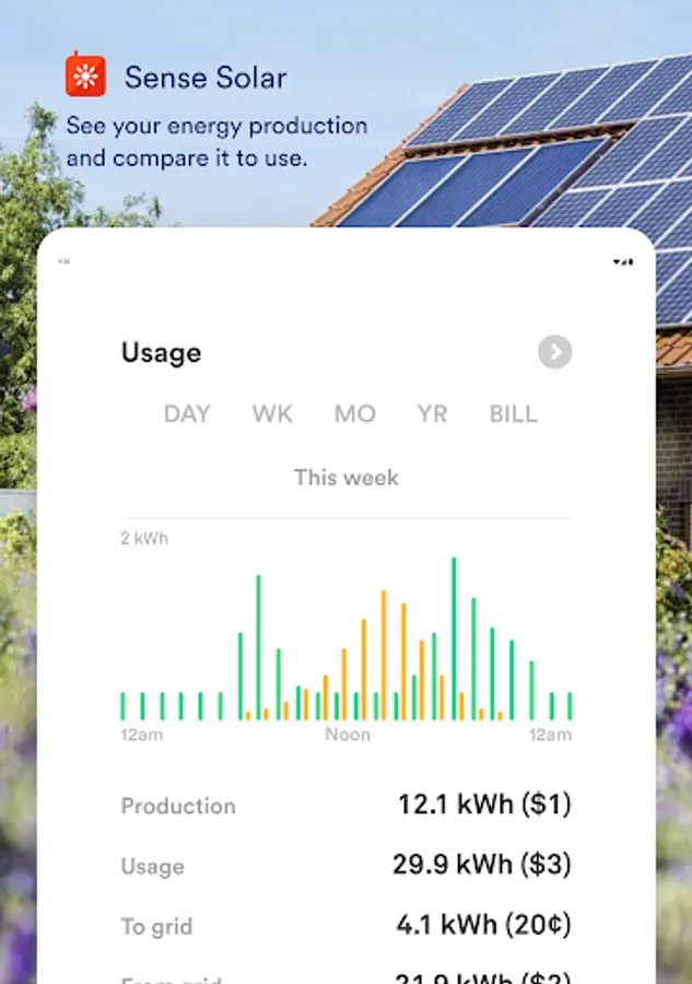 See how much energy your home is consuming in real time and how it compares to previous months right from your phone. Understand how your activity impacts your electric bill and get tips on how to save. People who use Sense save, on average, 8% on their electric bill.