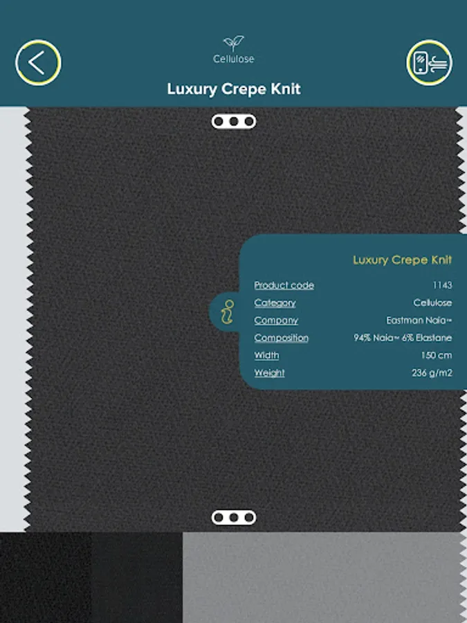 A new experience, a new concept of interaction with the catalog that simulate the physical characteristics and appearance of the real fabrics. Immaterial Catalogue visualize the effect of fabrics on various types of wefts and to choose the best alternative, speeding up and optimizing time and resources.