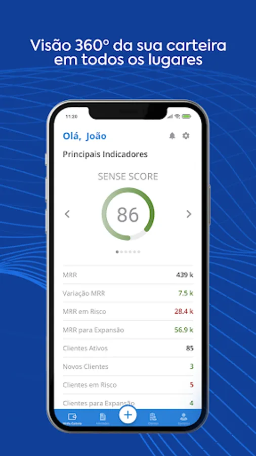 The SenseData mobile app allows you to manage your customers directly from the palm of your hand, providing a 360º view of the health of your portfolio and each customer in detail, in addition to accessing the activities and tasks you have scheduled.