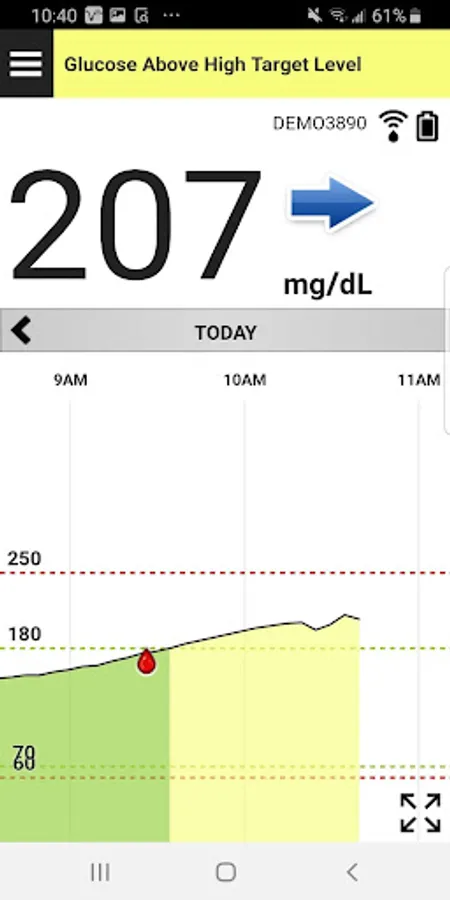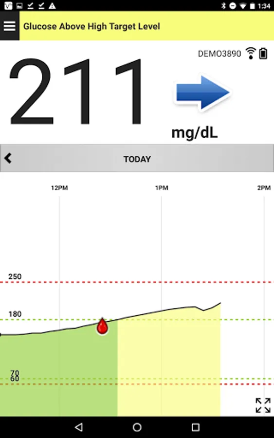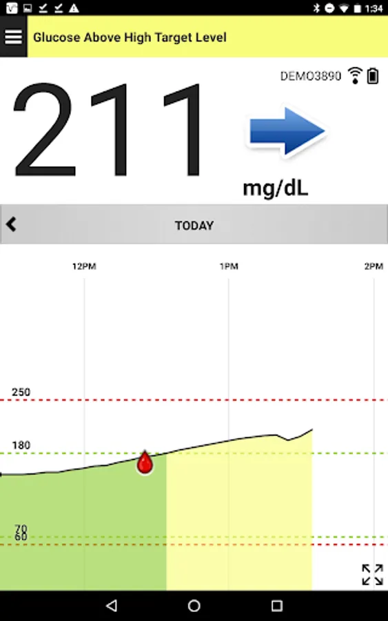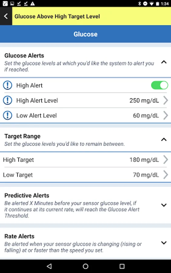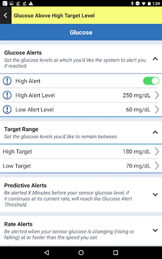 In addition to the current glucose value, the Eversense Mobile App provides alerts for hypo and hyperglycemia based on the settings you enter. It also displays the rate and direction of glucose changes, and provides the ability to enter glucose-related events like meals, insulin and exercise. The Eversense CGM Mobile App is also compatible with the Eversense NOW Remote Monitoring mobile app.