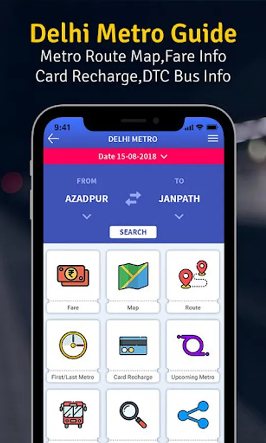 Latest Delhi Metro information and guide application provides advance features like Offline Route, Fare, Discount, Timing, Gate and station info, Feeder Bus Services and many more.