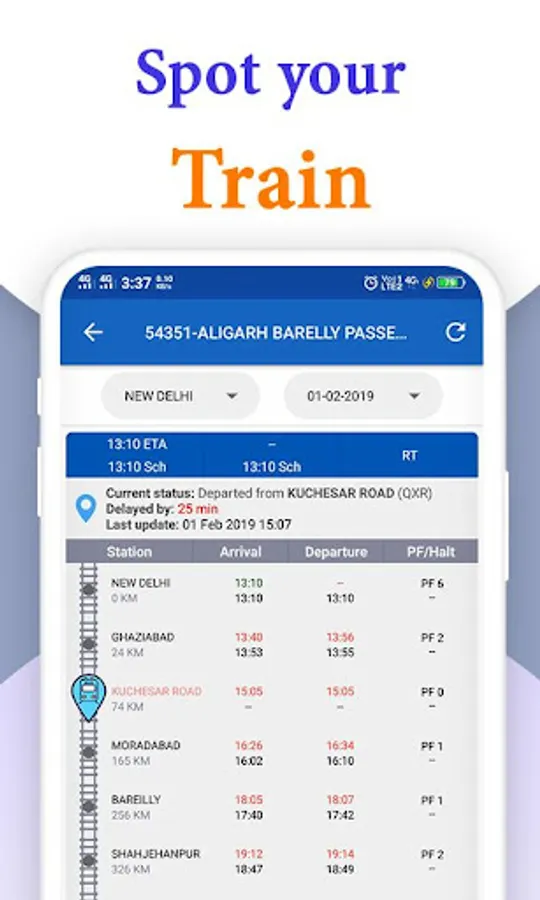 Live Train Status And Train Enquiry will help to find the your train current location and arrival and departure time on stations.