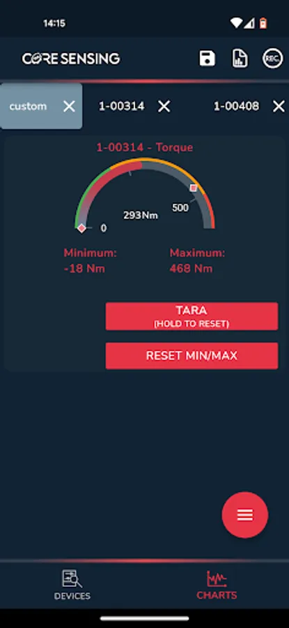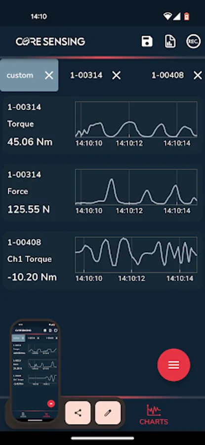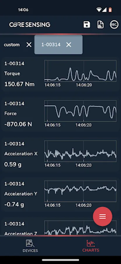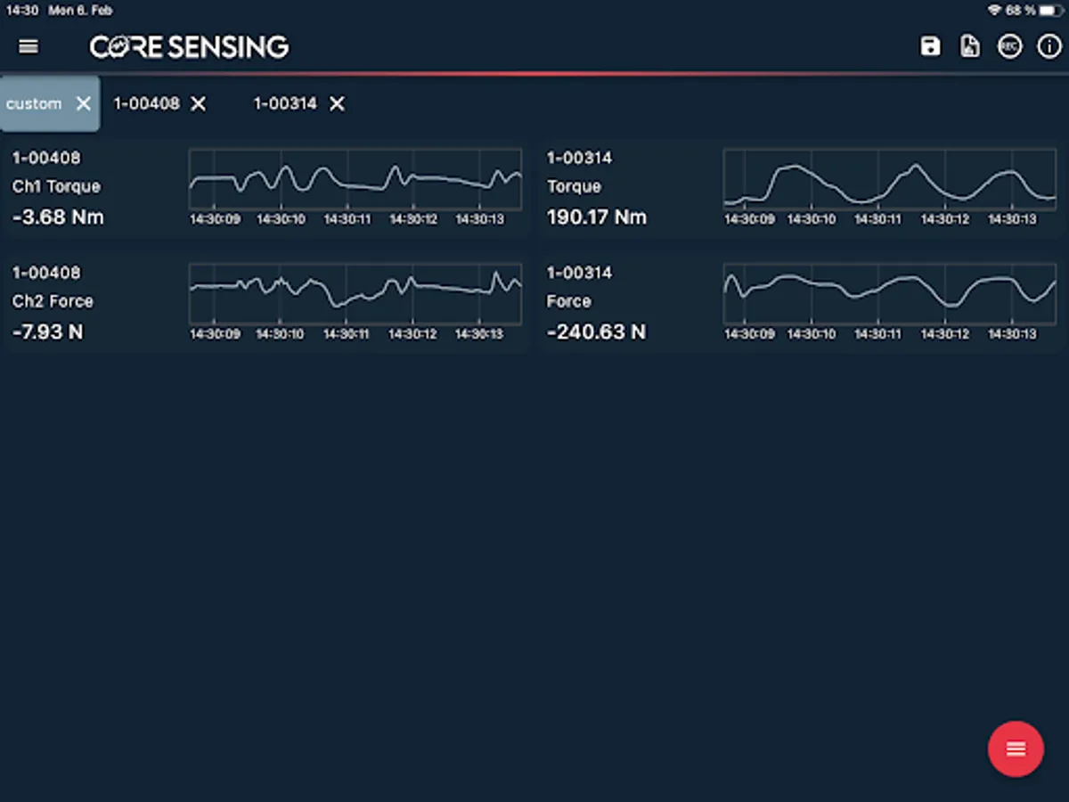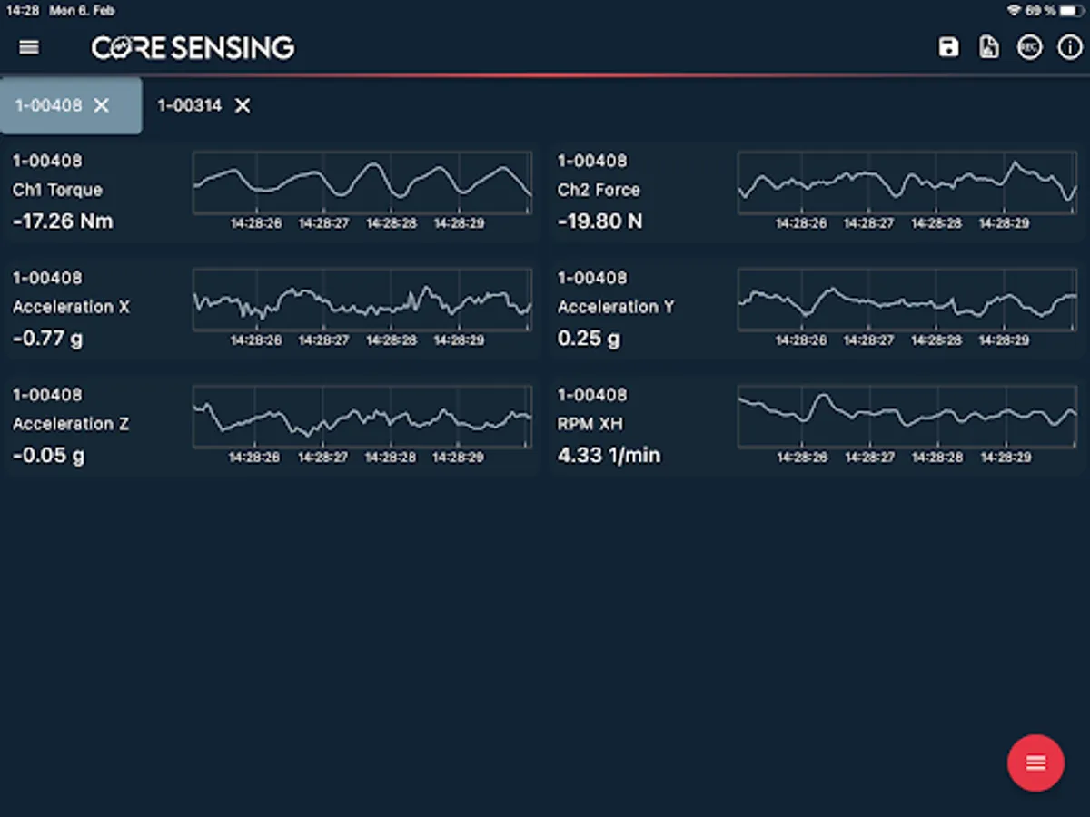 With the sensor app coreVIEWER measurement data of the smart sensor can be transferred to a mobile device, displayed and recorded.
