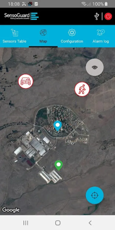 The SG-Patrol App displays sensors locations and alarm notifications on Google Maps.