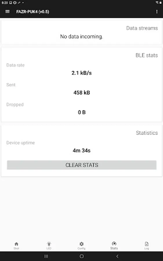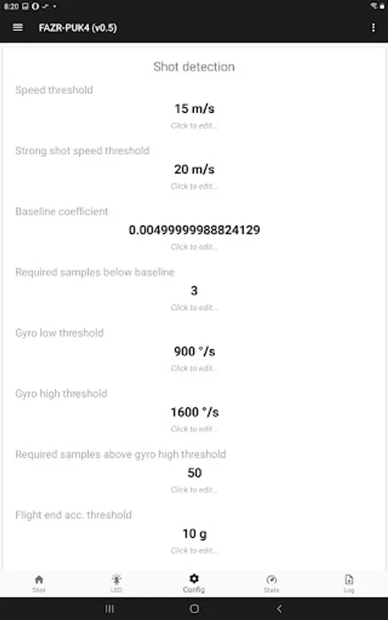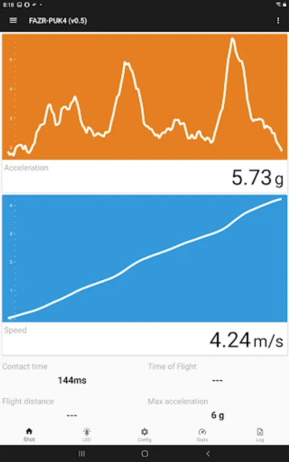 Provides communication and control of the FAZR-PUCK by Sensor Maestros. Provides configuration of the Shot Detection algorithm and LED pattern and color control. Displays graphs of shot speed and acceleration. Allows for changing the name of the FAZR-PUCK and logging data to a time-stamped CSV file.
