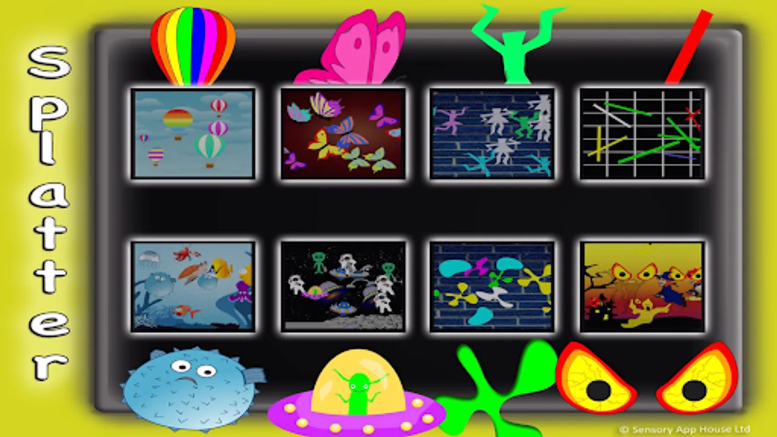 A fun app for young learners. As the name suggests, by tapping or clicking you can splat images all over the screen. Splat hot air balloons in the sky and see them float away. Add butterflies onto the canvas. Drop sea creatures under the ocean. Fill up outer space with astronauts and space ships. Create a halloween scene or just splat paint on the brick wall.