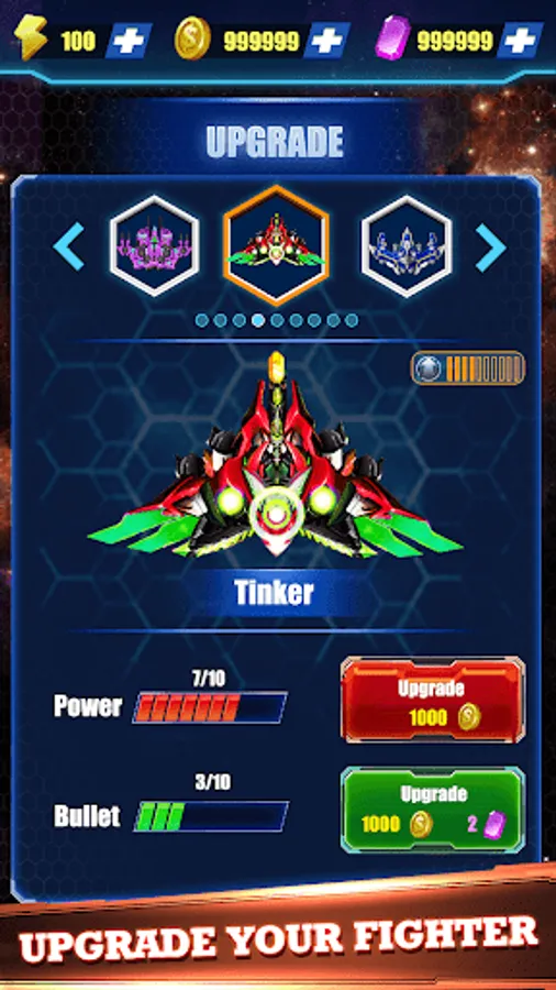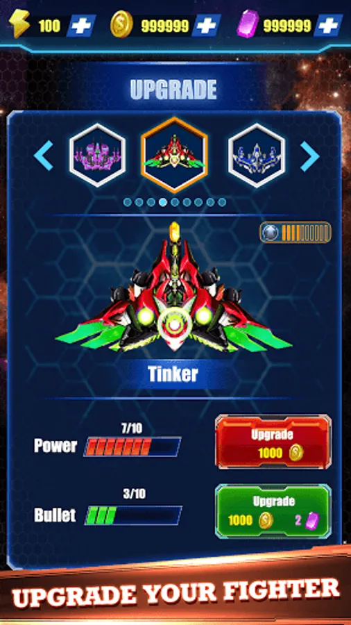 🚀 Upgrade your shooting weapons/ lasers/ bullets and galactic spaceship by collecting sky coins.