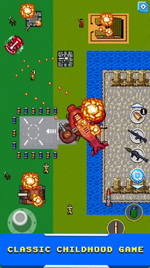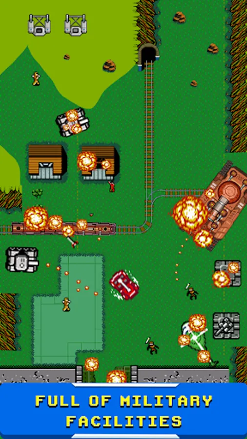 Your mission is to drive a jeep car and attack the enemy forces. They include tanks, planes, bunkers, soldiers, bombs, mines, snippers, etc.