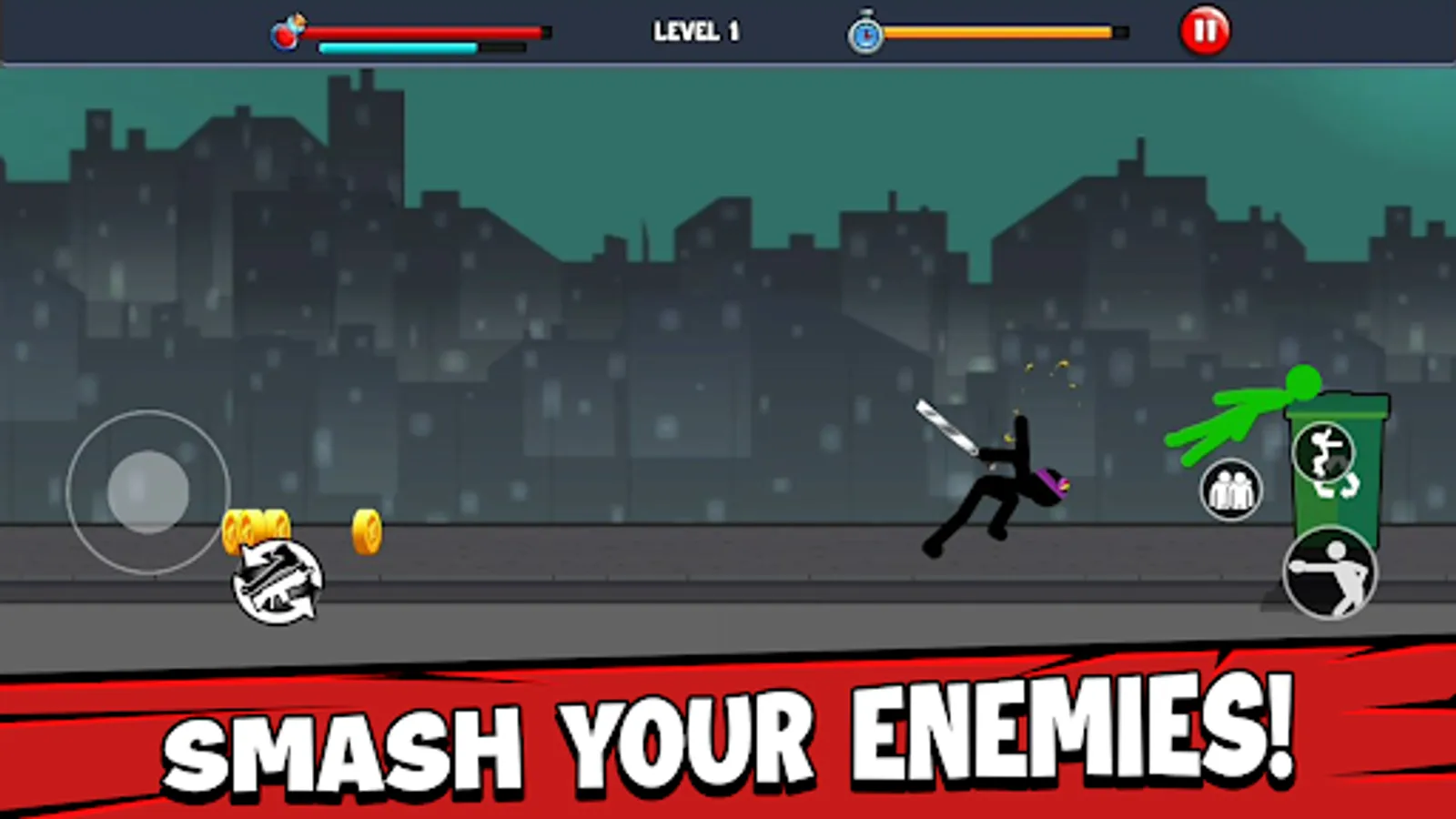 - Tap, jump, punch and kick non stop to fight all these stickman enemies inside buildings.