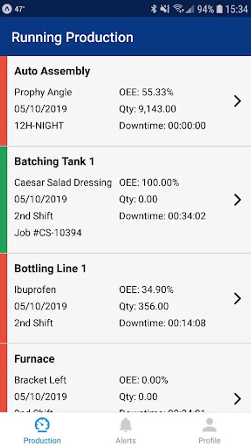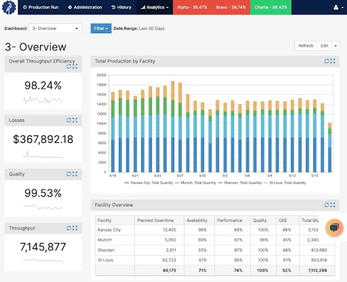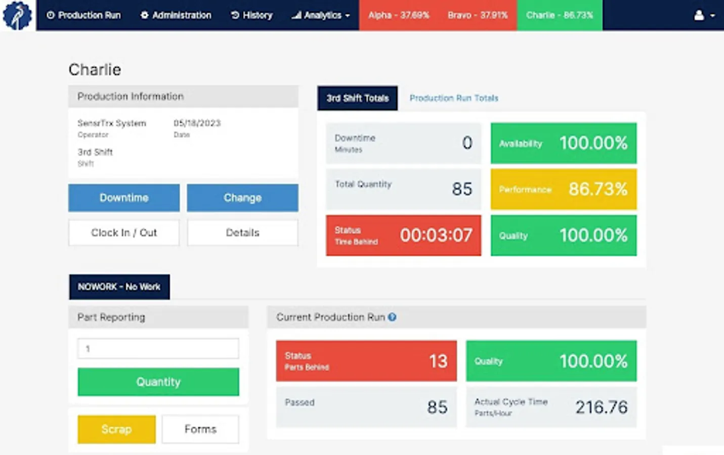 - See OEE, Cycle Times, Availability, Performance and Quality metrics