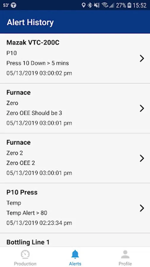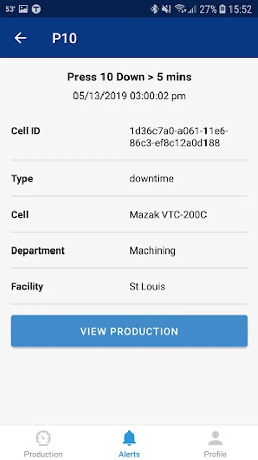 - Receive downtime alerts with reason codes by machine or cell