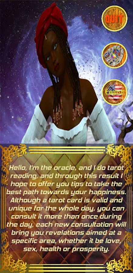 The oracle is an application that does tarot reading focused on sex, relationship, health and finances. The purpose of this application is to generate the card that will symbolize the luck of the day, and this card comes with the meaning that seeks to advise you to take the best route towards happiness. The app has ads, so for each new appointment it is necessary to watch a video. After watching the video, close the advertisement and you will be redirected to the forecast of the day.