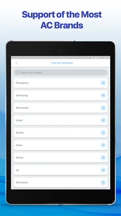 • Choose your brand of AC from the list of available ones and connect to it.