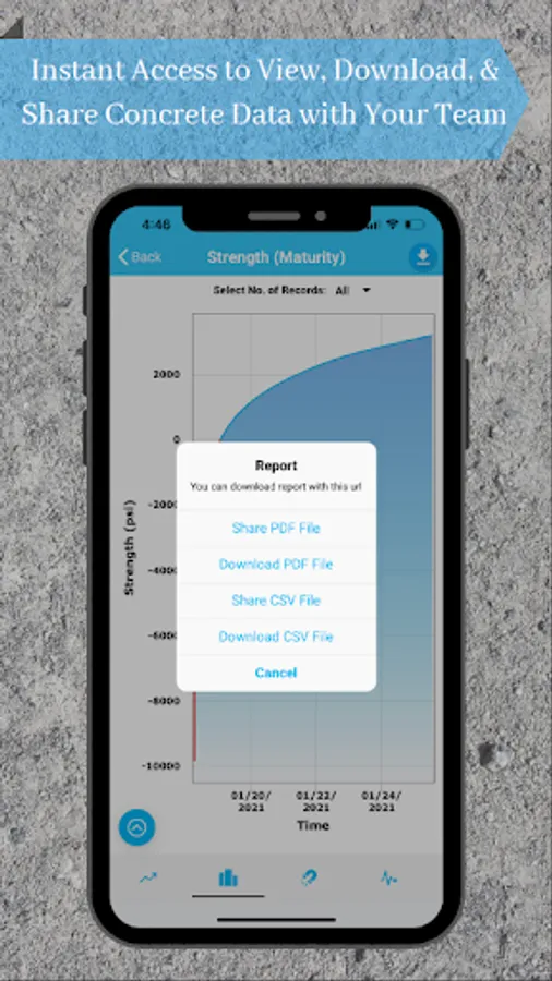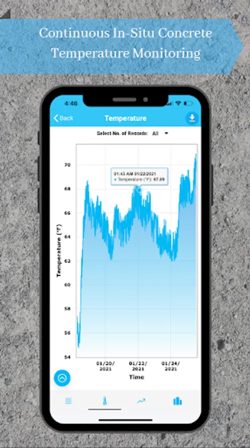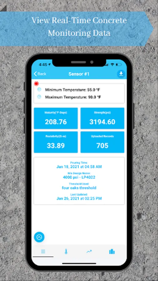 The app wirelessly connects to an easy-to-use SensyRoc™ sensor for the in-place monitoring of concrete after is during and after concrete placement.