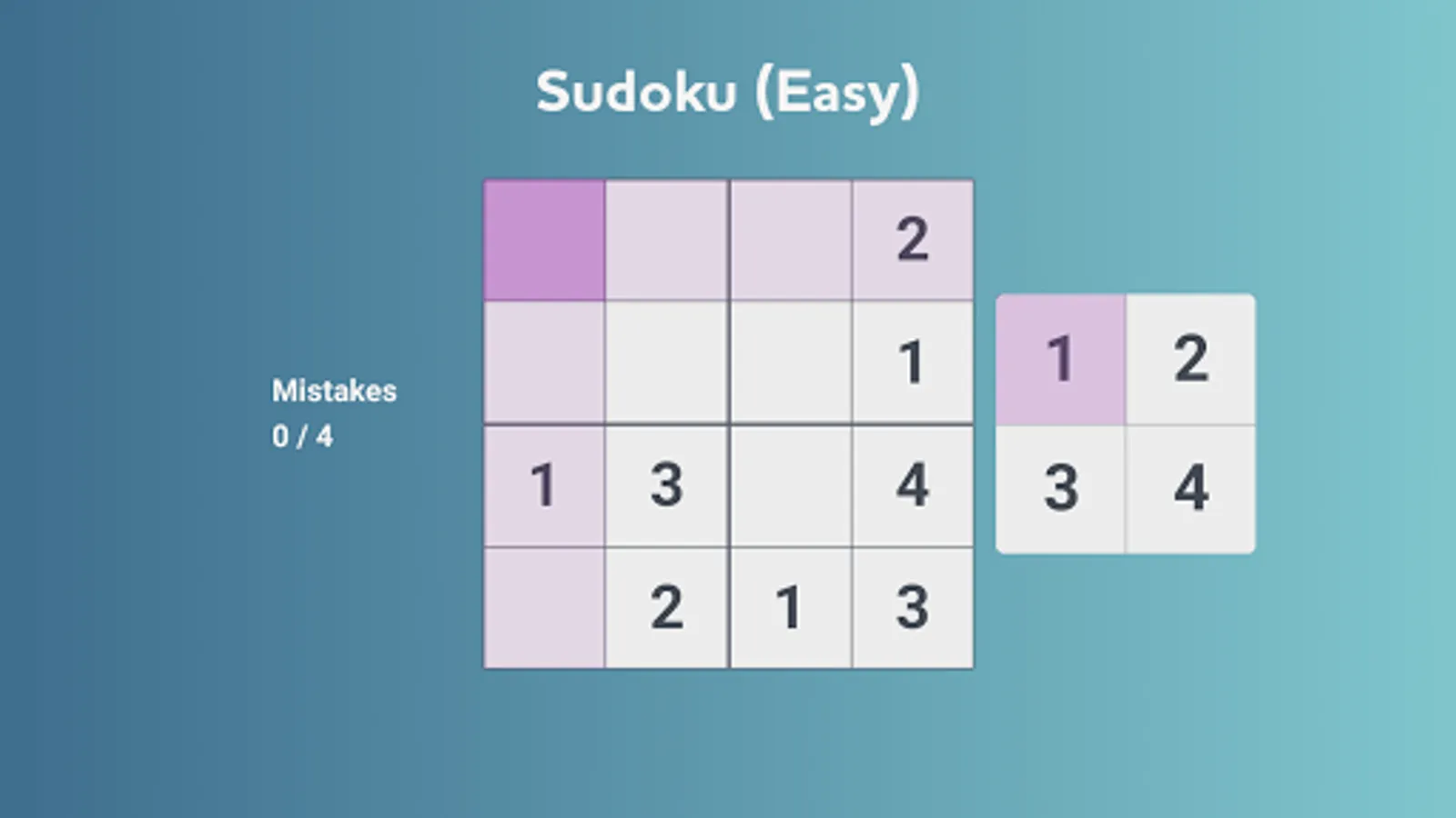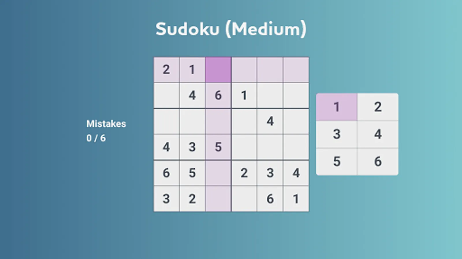 Sudoku with 4x4, 6x6, 9x9 and tournament mode. Best Sudoku for Android TV platforms.
