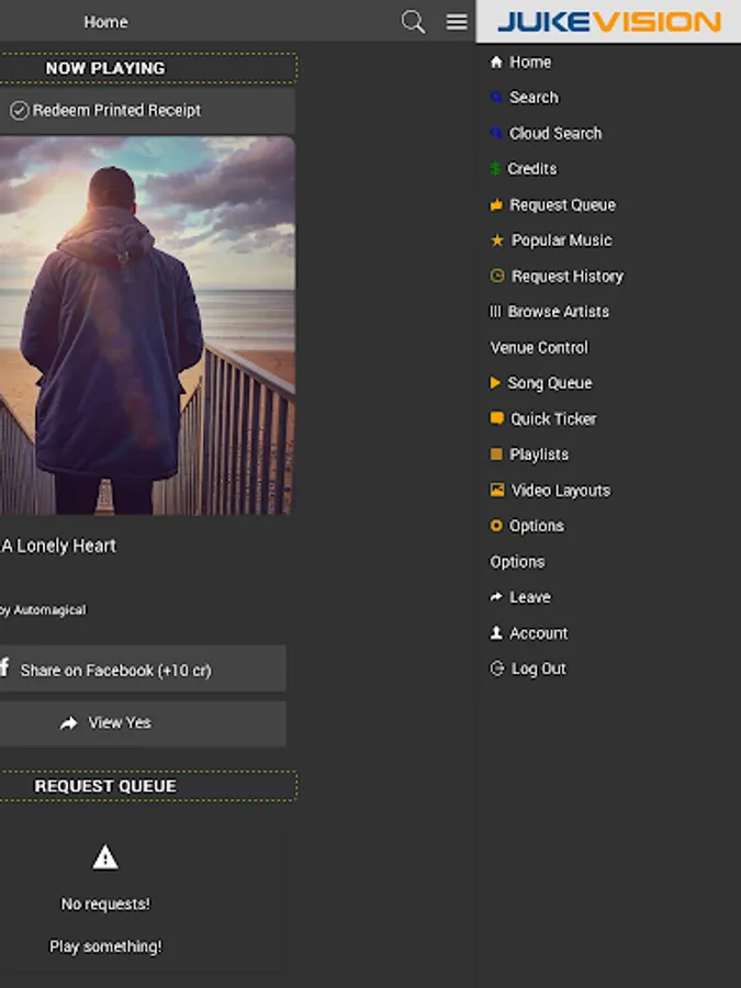 JukeVision is our companion app for our all-new revolutionary JukeVision Music Video Jukebox found in bars, pubs and other hospitality environments across the US. The simple, uncluttered design allows you to easily search for and request music and music videos to be watched on the venues TVs.