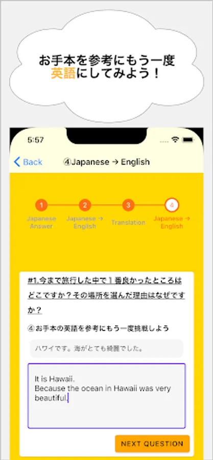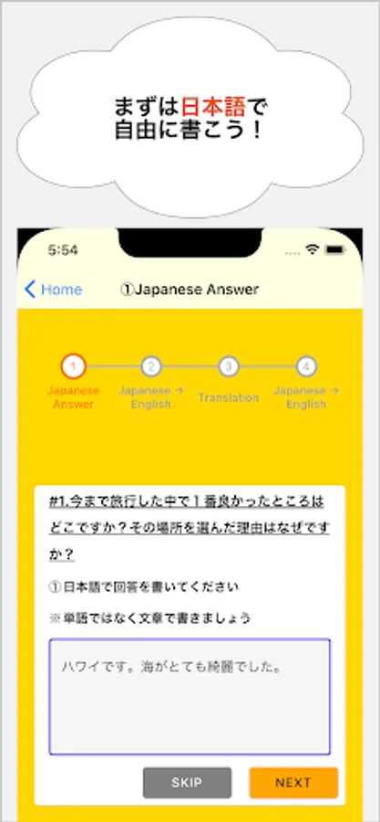 By practicing the above flow repeatedly, you will be able to speak the content that comes to your mind in fluent English!
