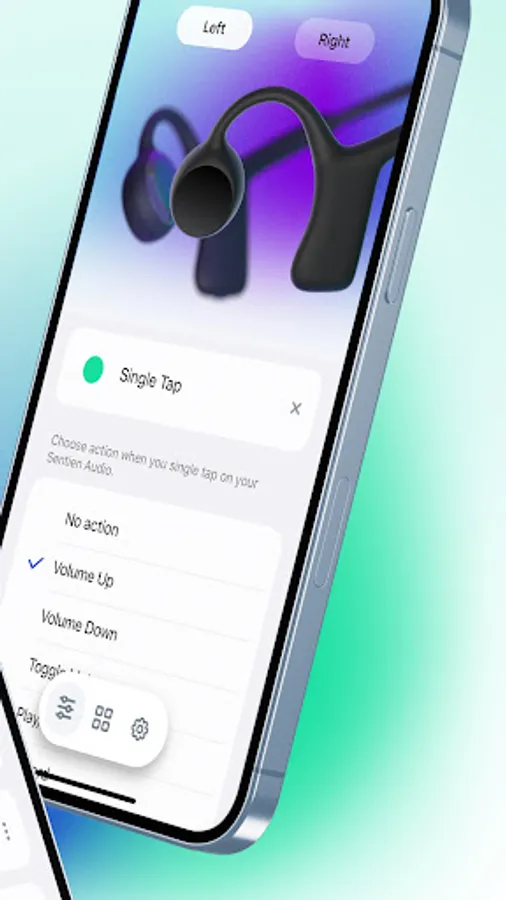 Customize up to twelve touch and gesture controls in the Sentien Connect app for your Sentien Audio headset.