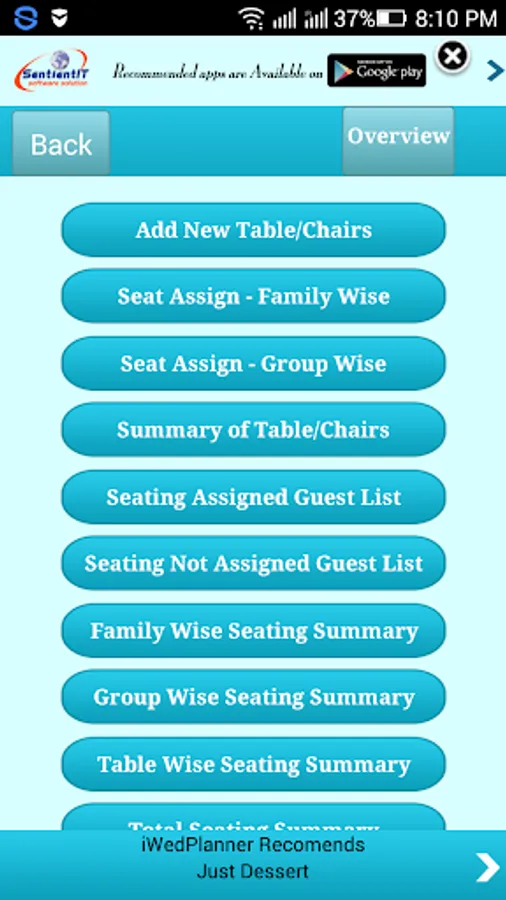 d. Can view the summary of Seating Assigned Guests List.