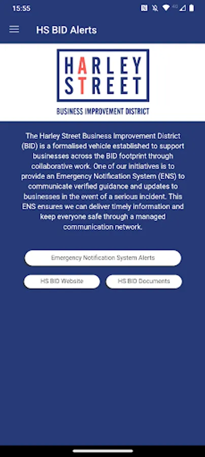 The Harley Street Business Improvement District (BID) is a formalised vehicle established to support businesses across the BID footprint through collaborative work. One of our initiatives is to provide an Emergency Notification System (ENS) to communicate verified guidance and updates to businesses and residents in the event of a serious incident. This ENS ensures we can deliver timely information and keep everyone safe through a managed communication network.