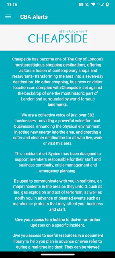 Cheapside Business Alliance’s Emergency Notification system allows for an efficient way to construct and send critical information to local businesses and respond to those that are in need. The comprehensive notification system keeps everyone informed before, during, and after any event to achieve situational awareness when time is of the essence.