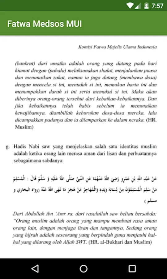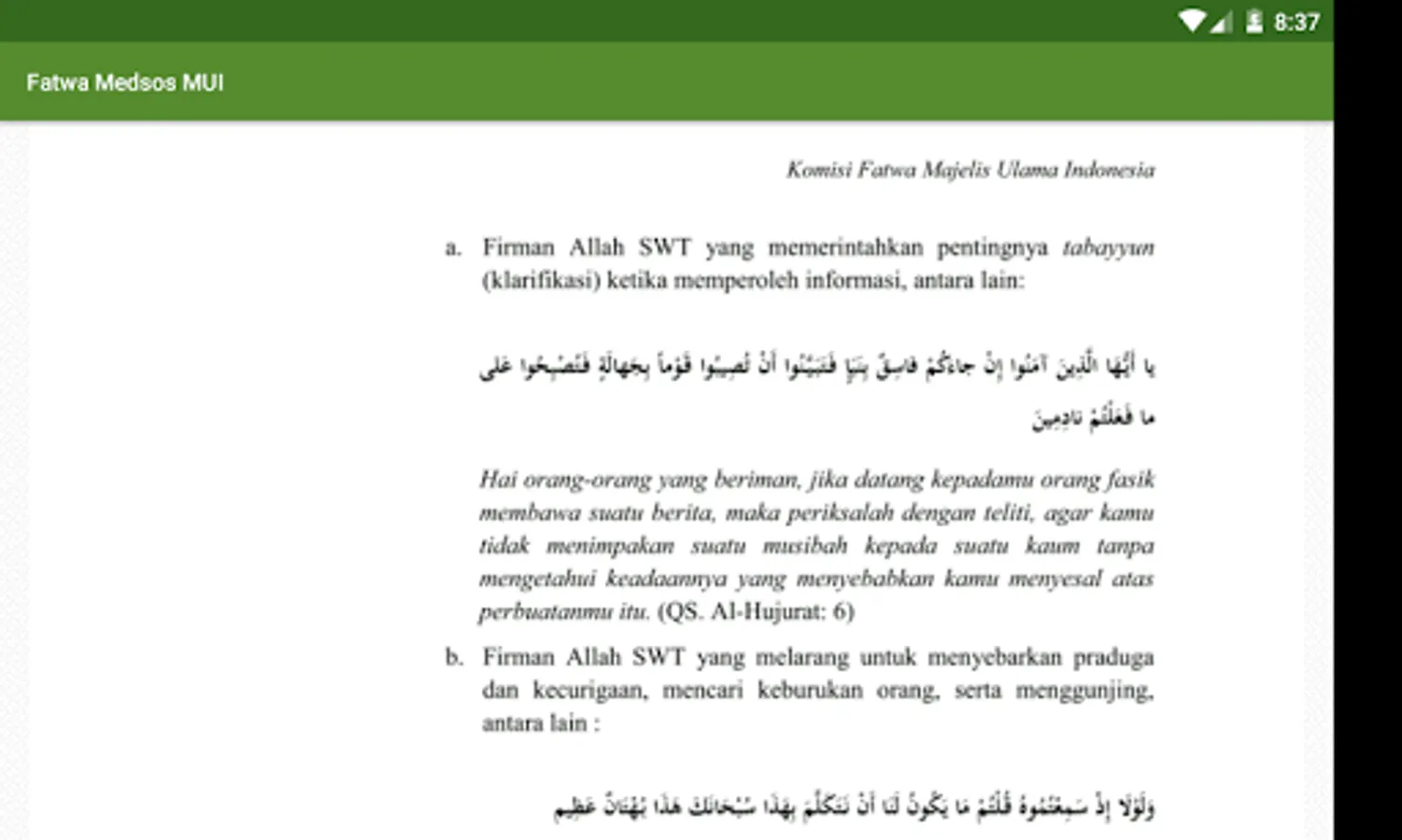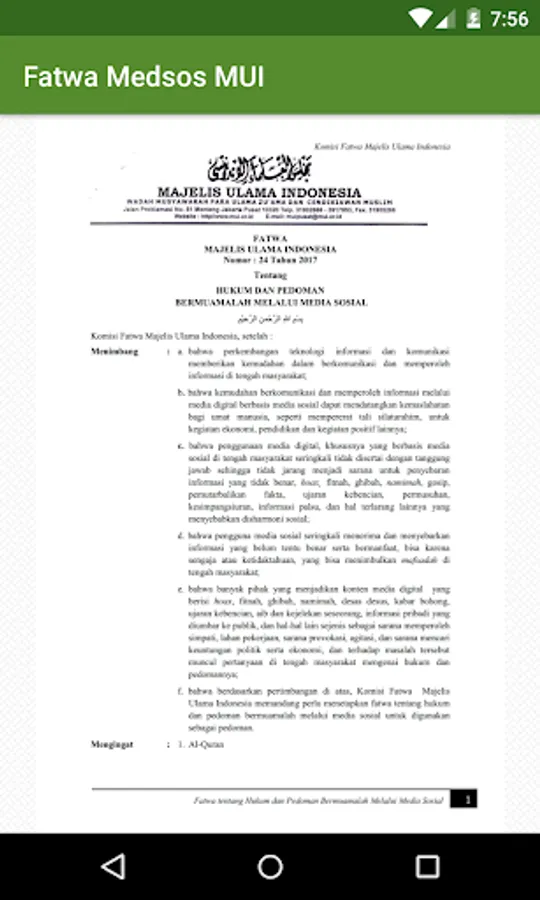This application contains the MUI fatwa about social media in a format that is easy to read at a divide android phone or tablet.