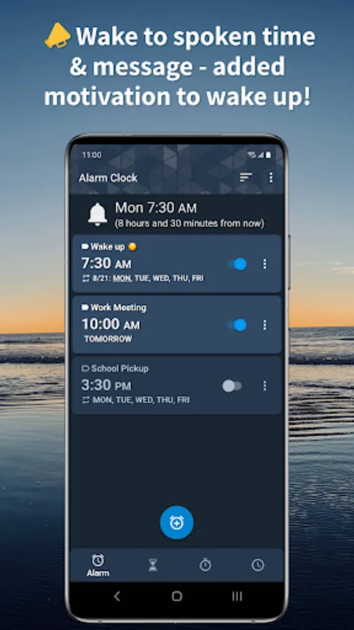 ✔ Upcoming alarm notification: be notified before your alarm goes off