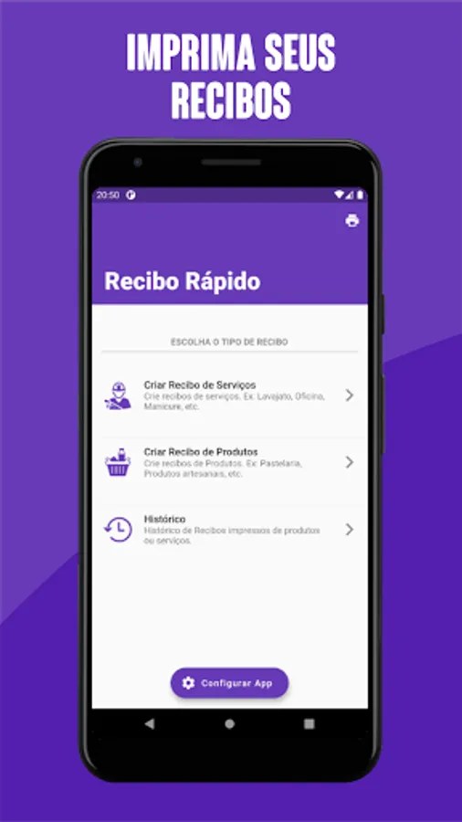 Application to create and print receipts, indicated for those who own some business and need to pass some type of receipt to their customers, this application is ideal for all types of business, requiring only an 80mm thermal printer to print your receipts.