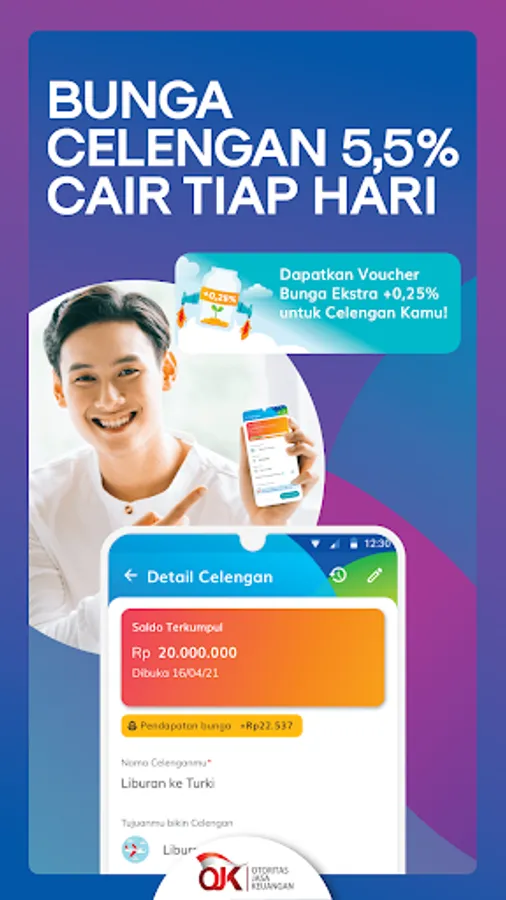 It's easier to achieve your financial dreams with the Piggy Bank feature. Digital savings with interest benefits of up to 5.5% per year and are flexible to withdraw at any time.