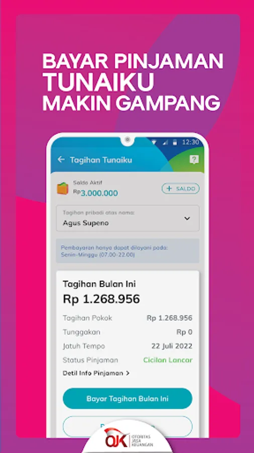 Apply for a loan and pay my Cash installments through the Amar Bank application. Loans of up to IDR 20 million with a tenor of 6-20 months. You can also pay your Tunaiku loan installments for yourself and other people by entering your VA Tunaiku number. You can pay directly in full or in part as you wish.