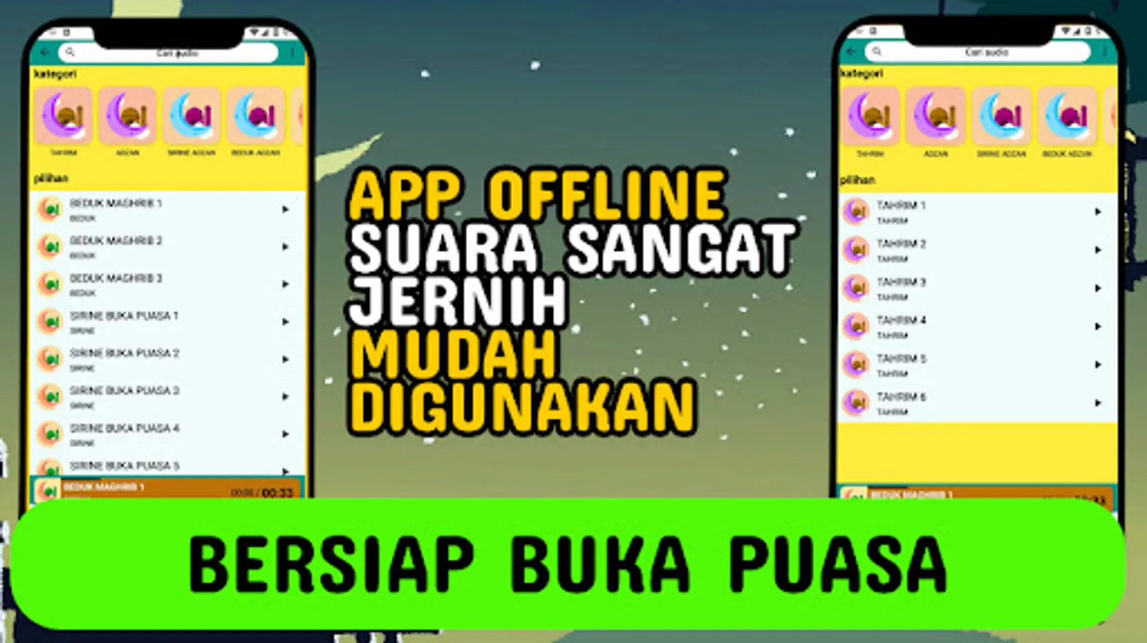 Marhaban, yes Ramadan, the beauty of the holy month full of grace will be even more lively with the sound app for breaking the fast offline and feel the warmth of the fasting month of Ramadan as lively as possible, don't forget that I apologize a lot if there are many mistakes.