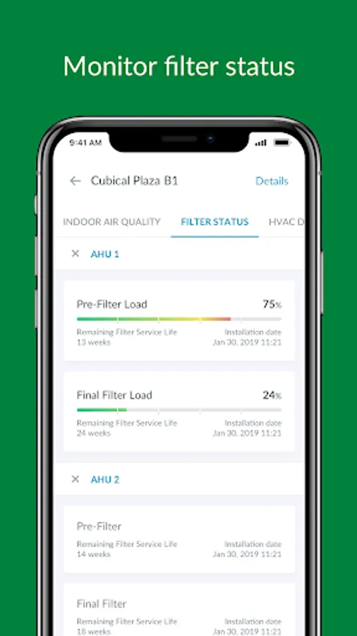 Harness the power of machine learning and predictive analytics with custom filter recommendations based on your unique environment and filter capacity. Monitor your air quality with all-in-one sensor solutions for your HVAC filter and office areas that look for health impacting pollutants