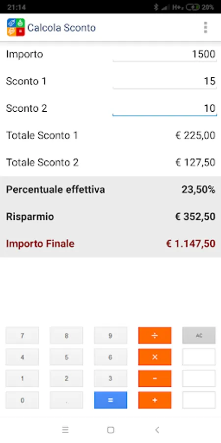 Very useful in the sales period, allows you to calculate discounts in real time and effortlessly.