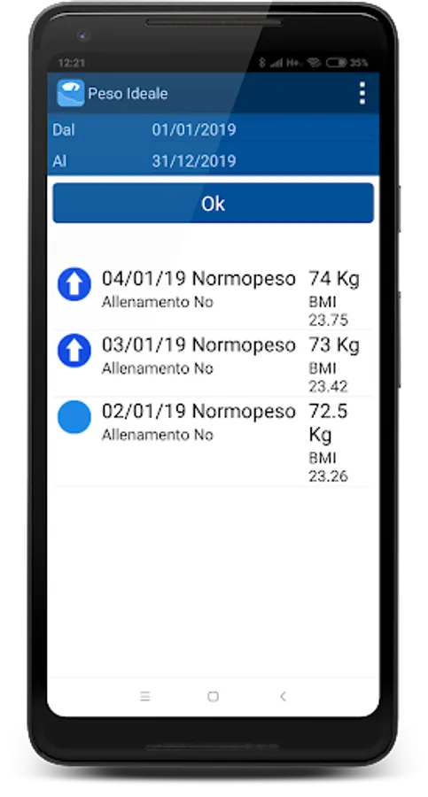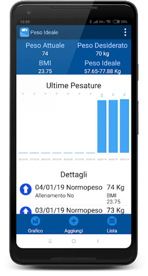 The weight tracker app allows you to enter your daily weight and provides statistics on