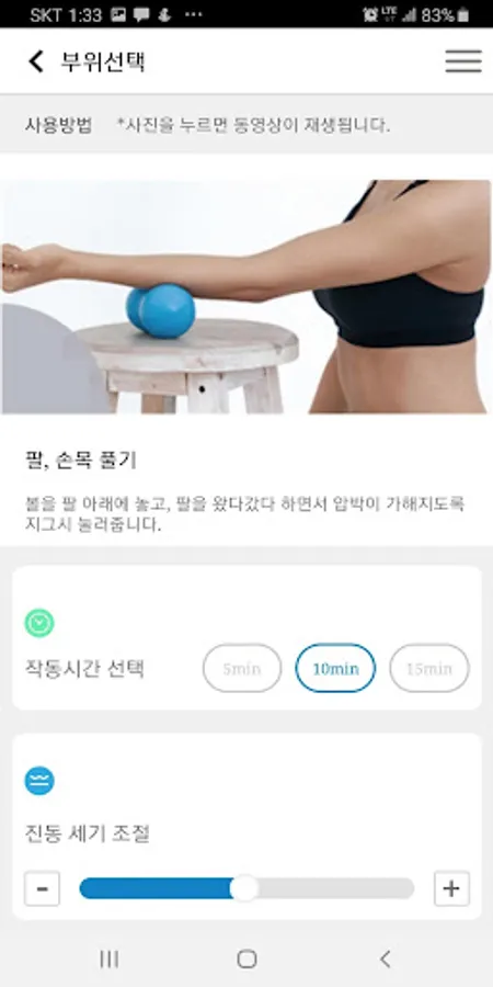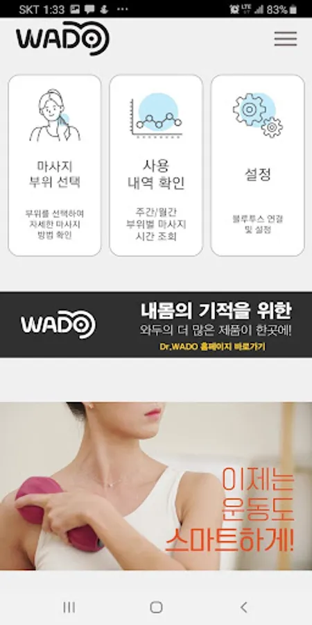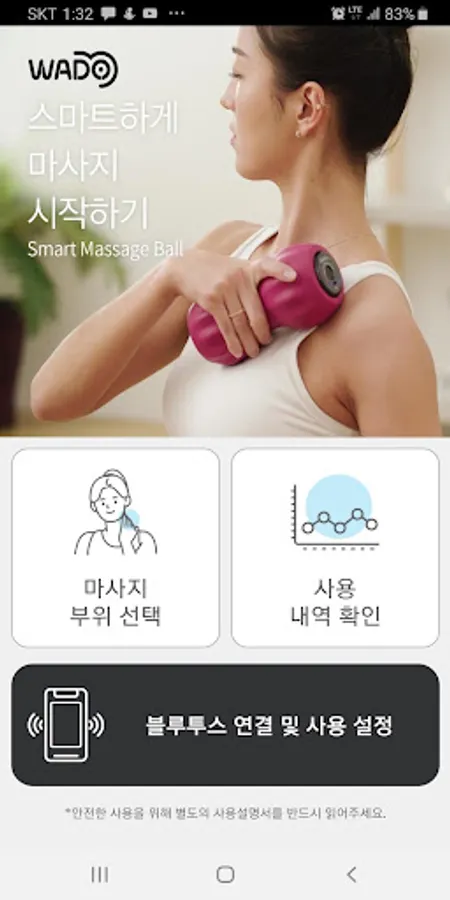 By linking the application with the Wadda massage ball, you can check the vibration strength and operating time.