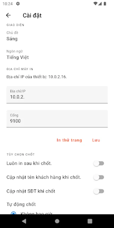- Support connecting printing via thermal printer via Wi-Fi or local network with the phone.