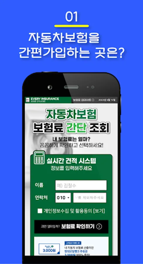 - Real-time comparison of car insurance premiums by major insurance companies in Korea