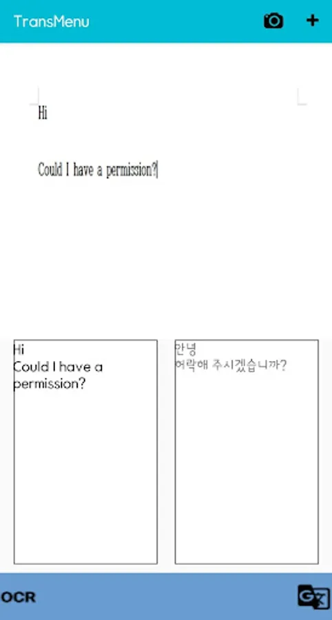 You can import a picture or a saved picture, and recognize the text of the loaded picture and display the translated result.