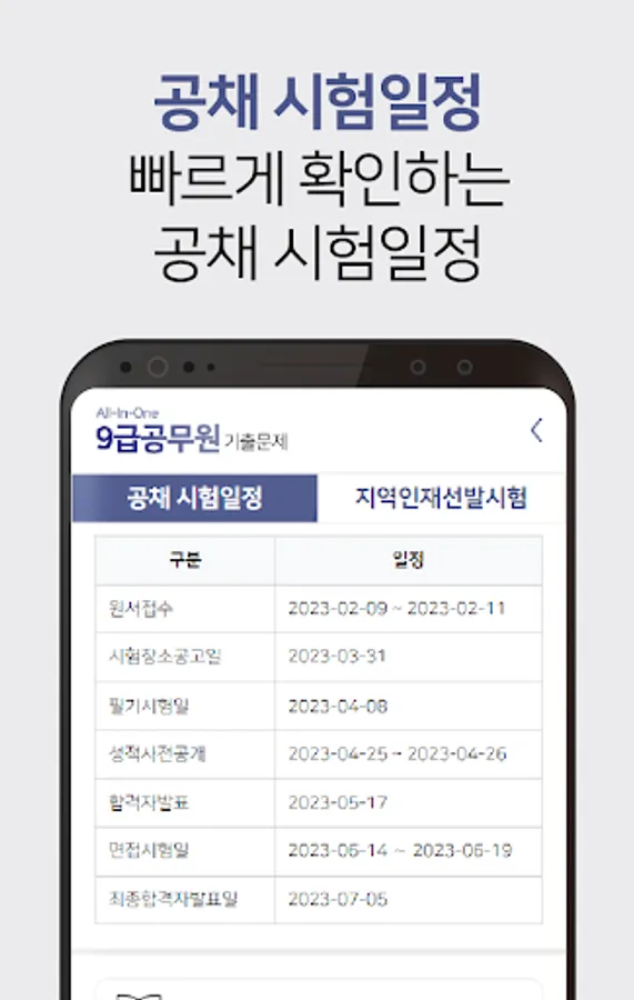 You can check at a glance from the date of application for the 9th grade civil servant recruitment & regional talent selection test, the date of announcement of the test site, the date of the interview, and the date of the announcement of the final successful applicants.